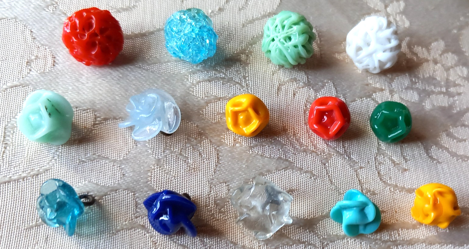 LOT DE 14 JOLIS BOUTONS FLEUR EN VERRE ET PATE DE VERRE.
