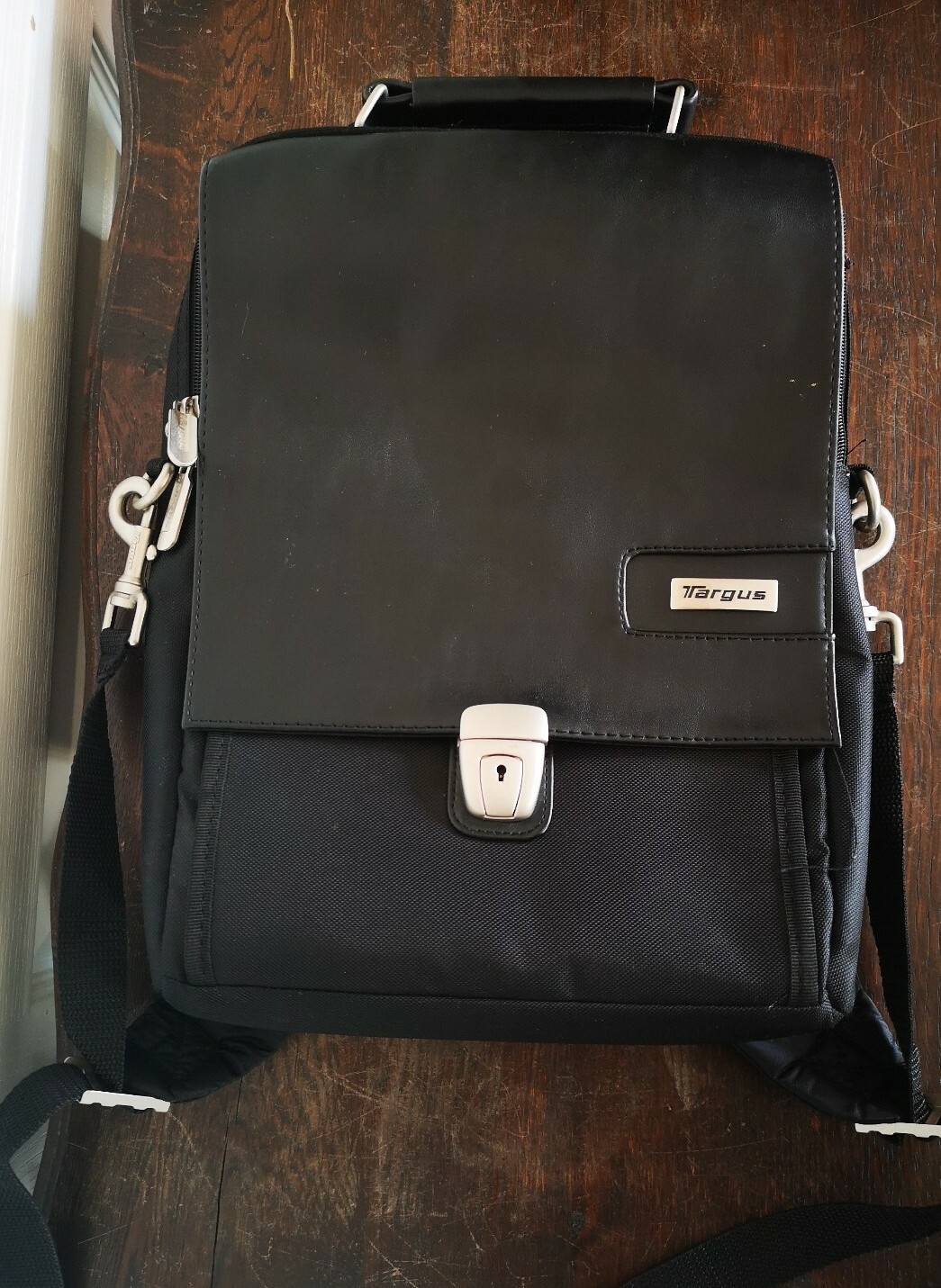 TARGUS Sac À Dos Avec Clé Pour Ordinateur Tablette PC Portable Convertible en Besace / Bandoulière Sac à dos Slim Plusieurs pochettes, emplacement téléphone, stylos. Dimensions du compartiment ordi : 33 x 25 cm Bon état général (proche du très bon) Voir les photos pour l'état et le descriptif de l'objet. Plus de renseignements par messagerie. Les frais d'envoi à l'international concernent l'Europe et la Suisse. Pour une autre destination, me demander les frais de port avant. Merci
