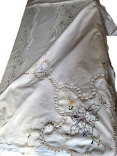 Nappe vintage au crochet, linge de maison vers 1950, 145 x 107