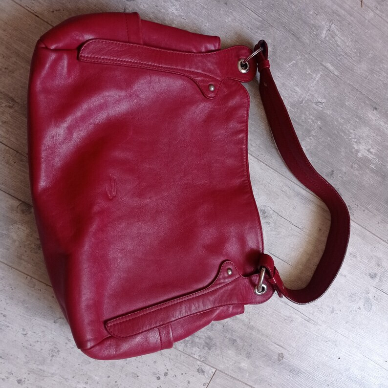 Sac à main en cuir rouge foncé Patrick Blanc. Envoi en mondial relay. Bon état.Très propre à l'intérieur.