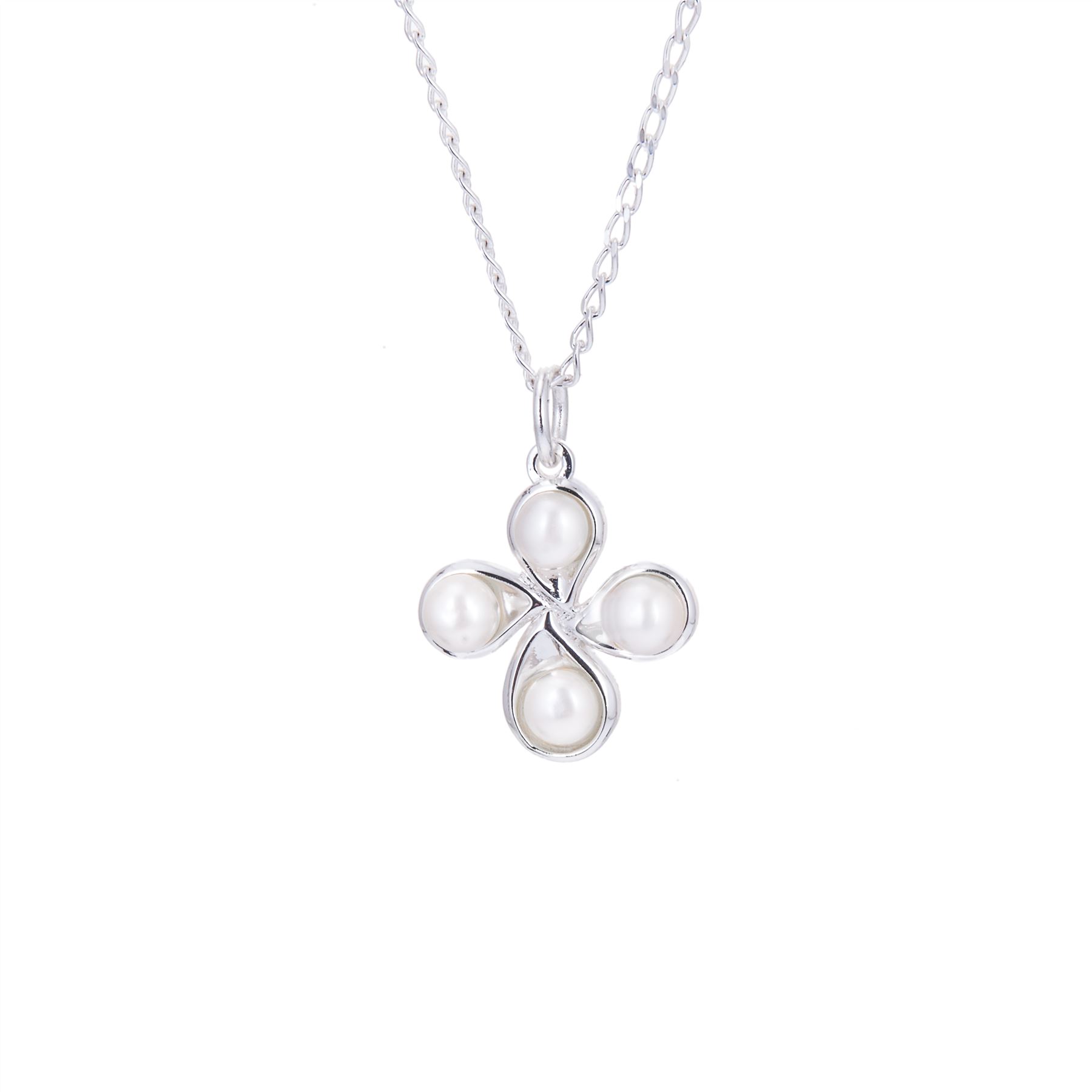 Collier en argent sterling avec trèfle à quatre feuilles et perles 14-22 pouces