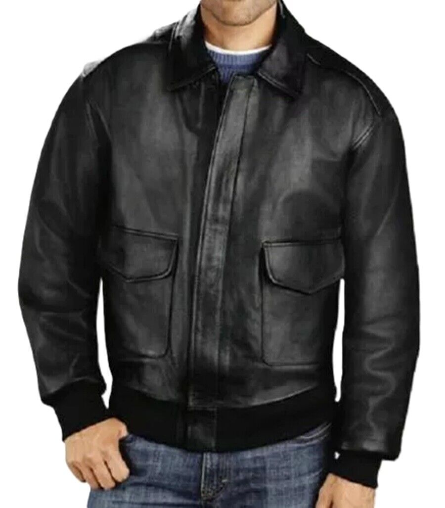 Blouson motard bombardier homme A2 Pilot 100% cuir véritable vintage...