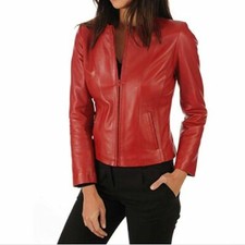 V Veste en cuir souple et lisse. v La veste est fabriquée à partir de cuir d’agneau souple 100 % véritable. v Le matériau de la doublure à l'intérieur de la veste est une doublure en polyester avec deux poches poitrine à doublure intérieure.