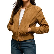 Blouson bomber en cuir daim marron pour hommes veste de mode style motard...