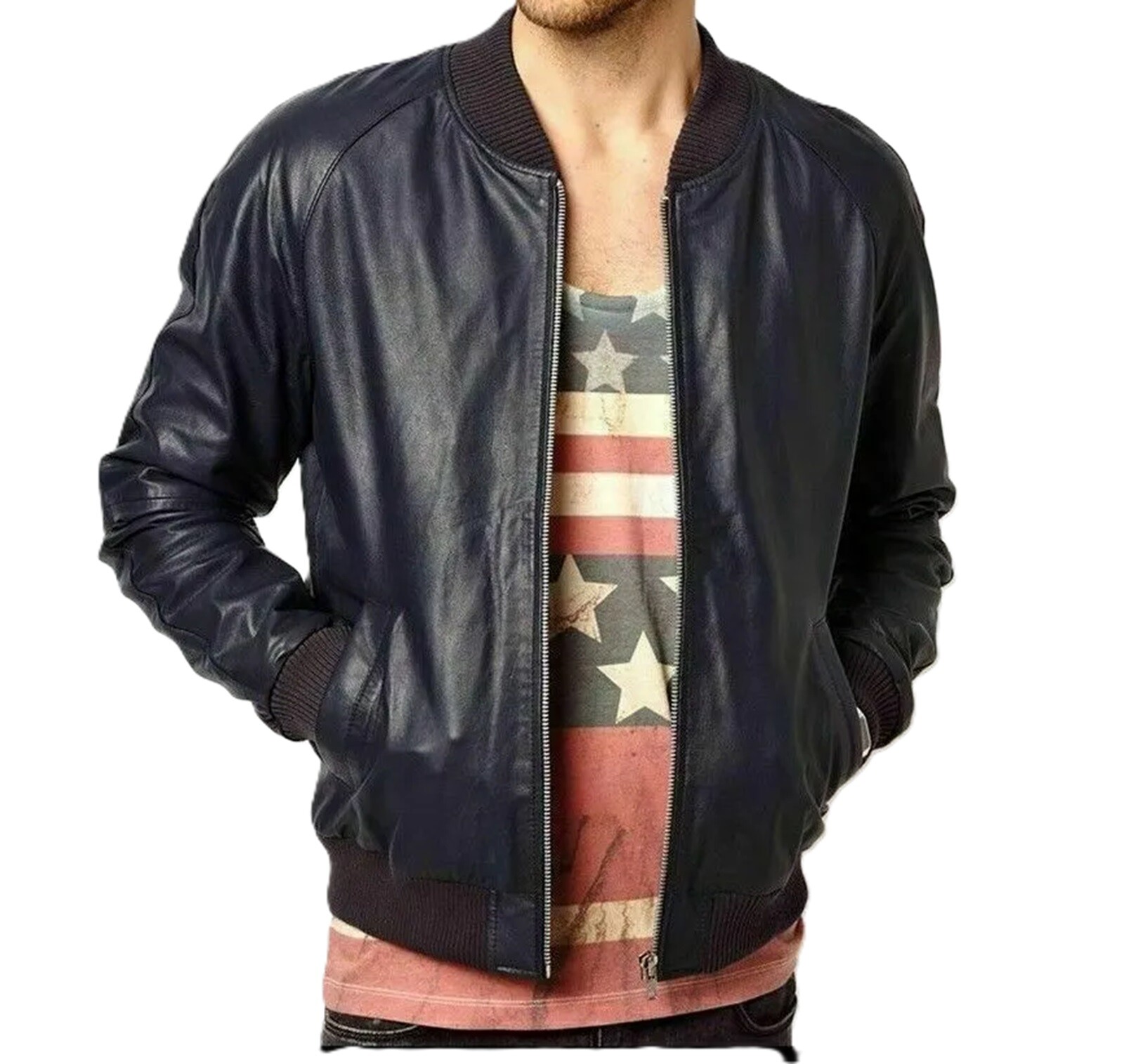 Blouson de motard bombardier basique en cuir véritable 100 % souple pour homm...