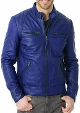 Veste de moto élégante pour femme en cuir d'agneau véritable veste bleue motard