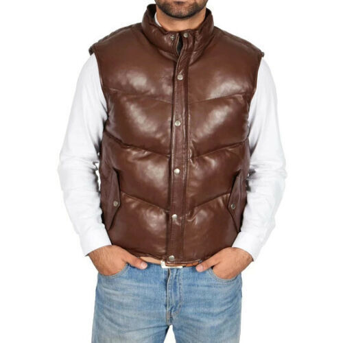 Gilet gilet en cuir d'agneau véritable pour hommes manteau gilet matelassé...