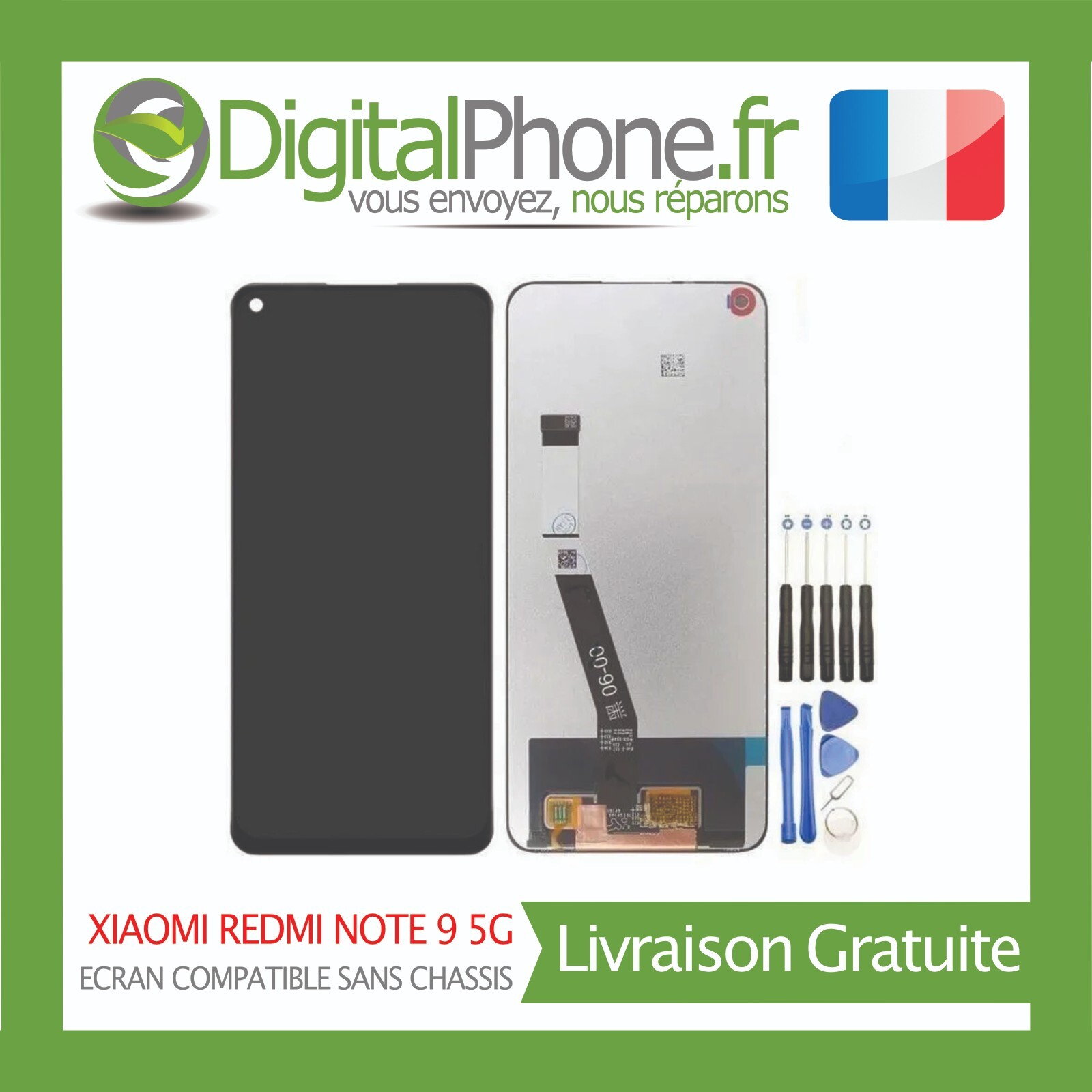 ECRAN COMPATIBLE SANS CHASSIS XIAOMI REDMI NOTE 9 5G NOIR + OUTILS -TVA-