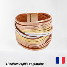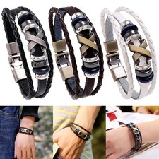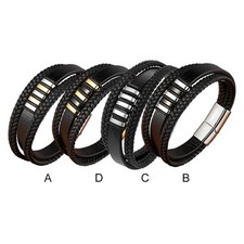 Bracelet en cuir tressé multicouche pour homme, bracelets en acier inoxydable av