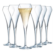 Ensemble 6 pièces. Flûte à champagne pour vin mousseux, verre à prosecco 182 ml Collections RCR haut de gamme, conçues pour l'ameublement de table de haut niveau. De fines épaisseurs rendues très résistantes aux impacts grâce à la haute densité du cristal écologique. Le dessin de la coupe dans le coin de courbure maximale indique le niveau correct de vin à verser, tandis que la partie inférieure conique du verre permet d'apprécier les dégradés de couleurs dans leur splendeur maximale. Si disponible, vous pouvez demander une couleur spécifique parmi celles présentées dans l'article.