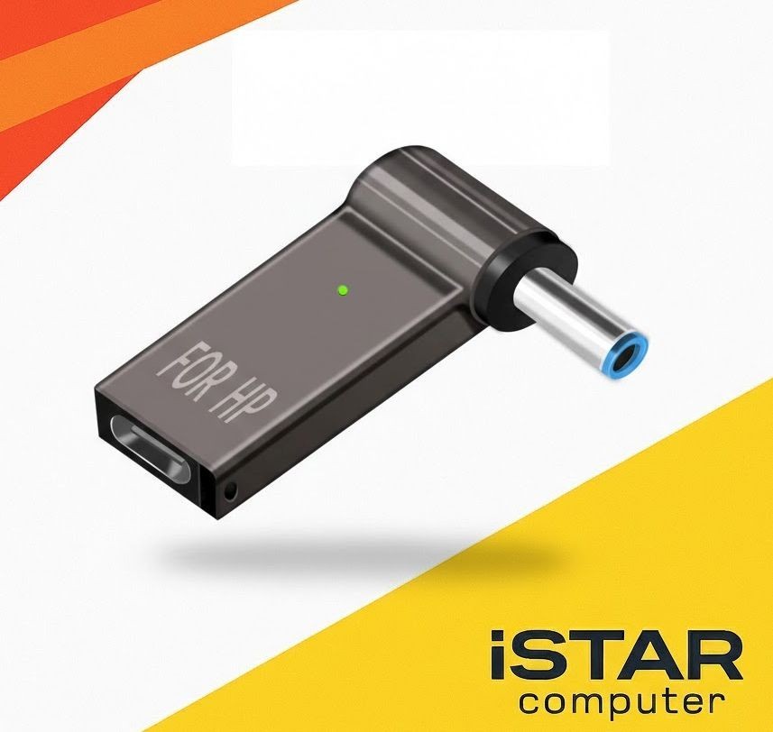 Adaptateur USB-C vers DC 4.5x3.0mm - 100W PD. Puissance Max : 100W (Auto-adaptatif 90W, 65W, 45W). Connecteur : USB Type-C (entrée) vers 4.5mm x 3.0mm avec Pin (sortie). Simplifiez votre installation avec cet adaptateur haute performance pour ordinateursHP.