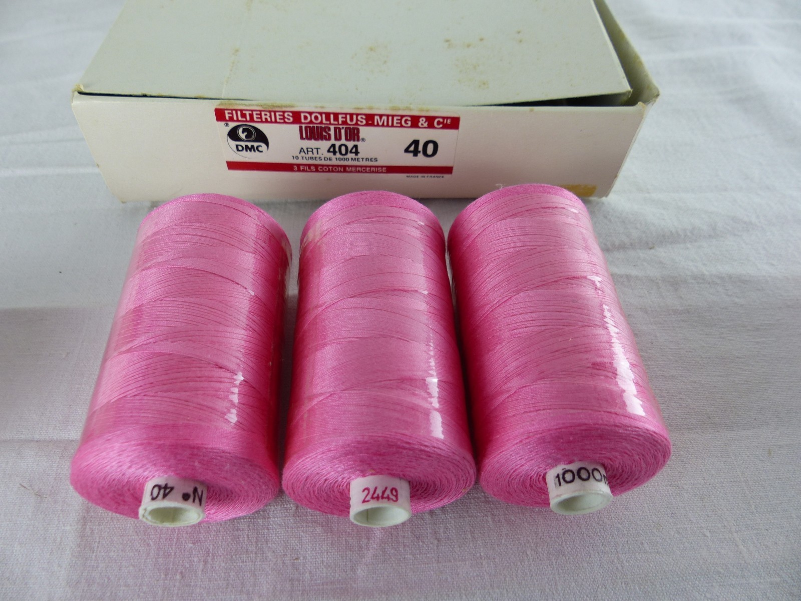DMC lot de 3 bobines de fil coton N° 2449 rose mauve 1000 mètres N° 40 art 404