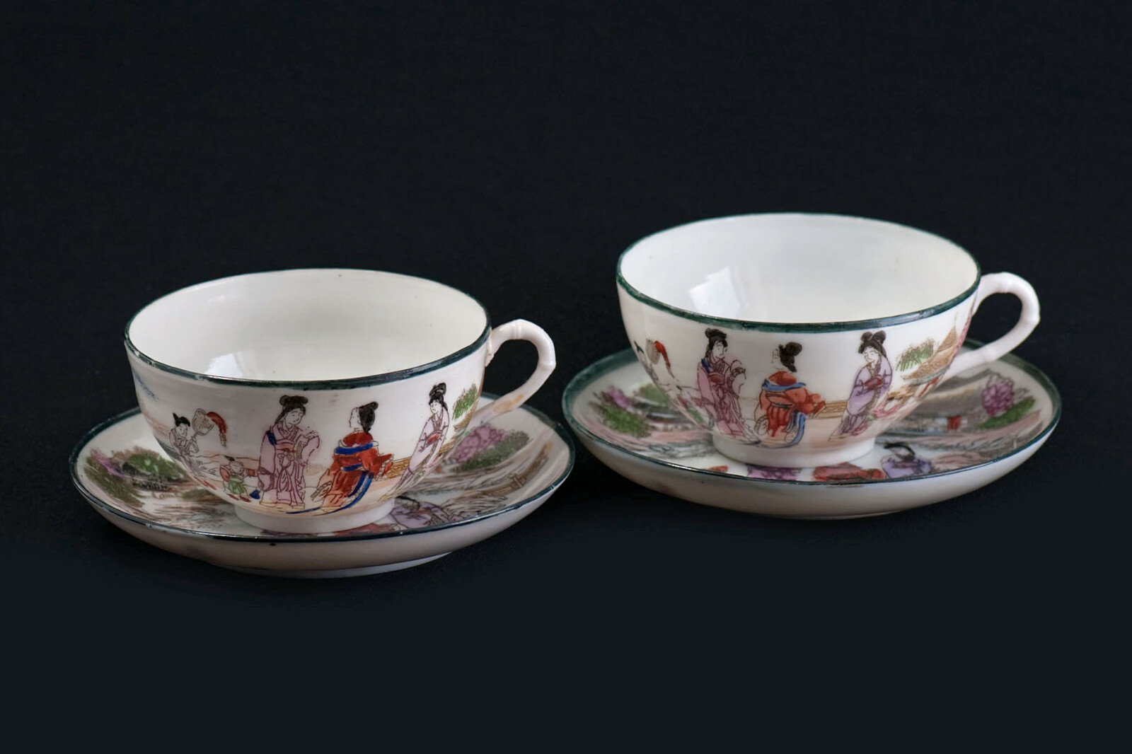 Asie 2 Anciennes Tasses et Sous-tasses à Thé en Porcelaine Fine Japon ou Chine