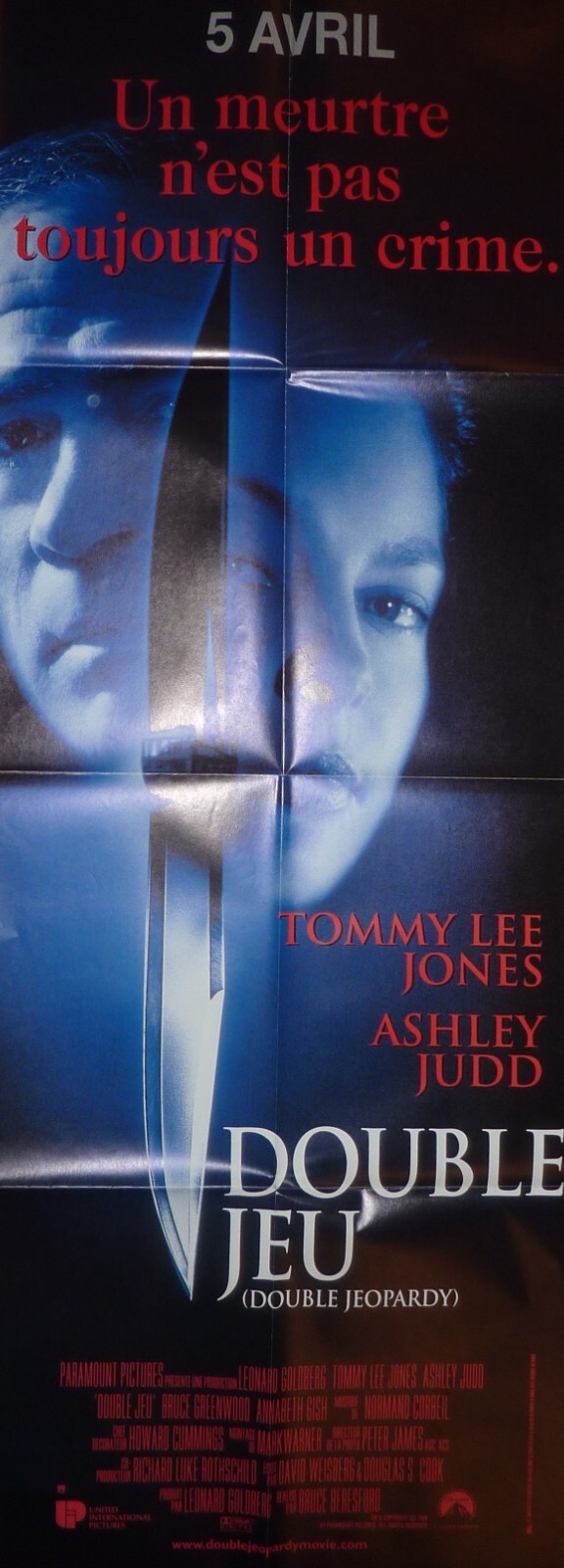 Affiche 60 X 160. AFFICHE DE CINÉMA ORIGINALE. AFFICHE EN BON ÉTAT. AFFICHE PLIÉE D'ORIGINE. DOUBLE JEU. Du Film De Bruce Beresford De 1999. De sa cellule, elle apprend que son fils a disparu et que Nick n'est pas mort.