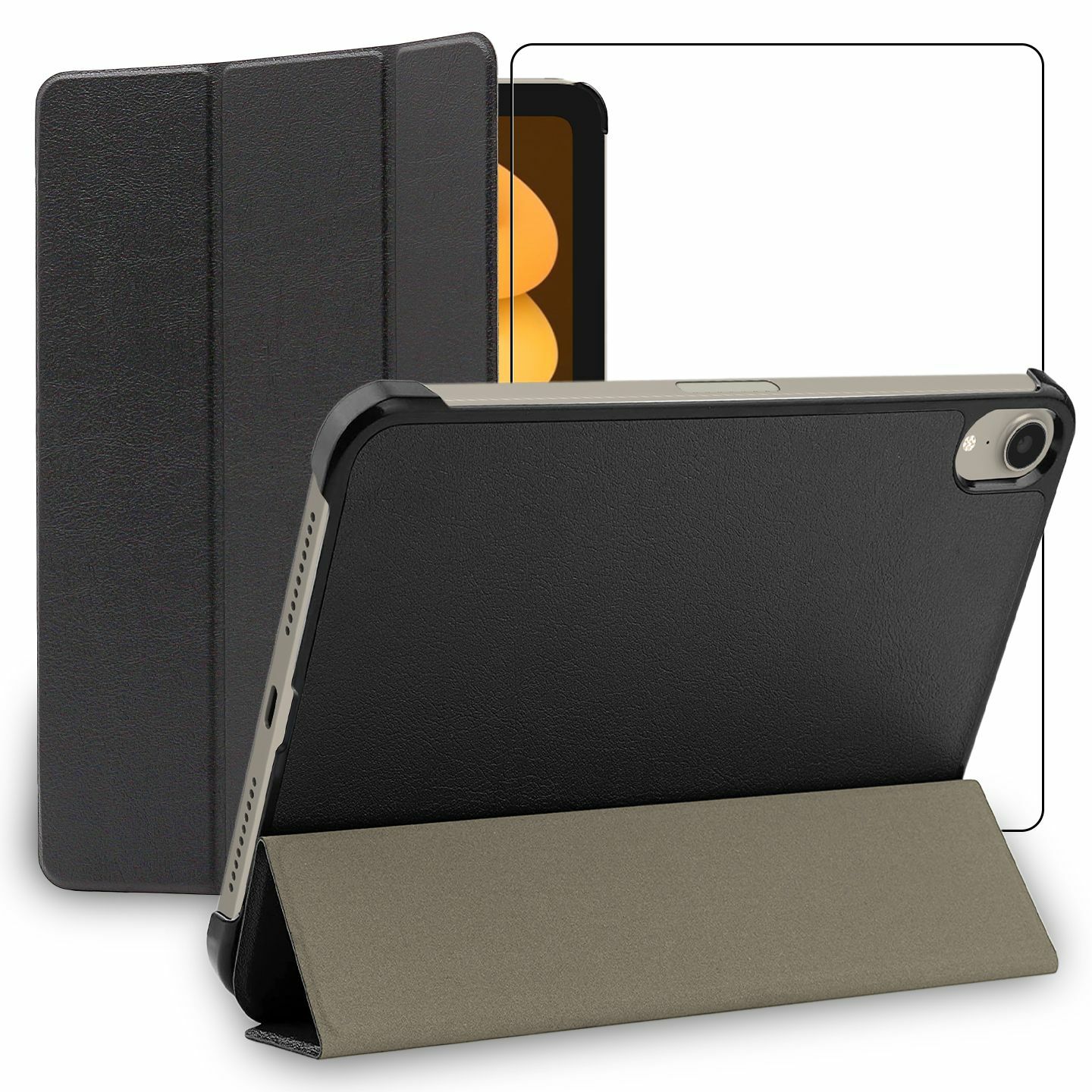EbestStar - Coque pour Apple iPad mini 2021 8.3" (6 gen), Noir. Allumage/Mise en veille automatique de la tablette (si elle est équipée de cette fonction). Etui Slim Cover, Housse PU Cuir Rabat Magnétique + Verre Trempé.