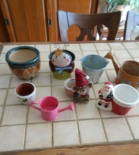 LOT DE 6 CACHE POT OU JARDINIERES EN TOLE AVEC BORDURE OSIER. J AI MIS SUR LA PHOTO PLUSIEURS POSITION DES CACHE POT. 17 CM LONGUEUR DESSOUS 12 CM LARGEUR SUR LE DESSOUS ET.