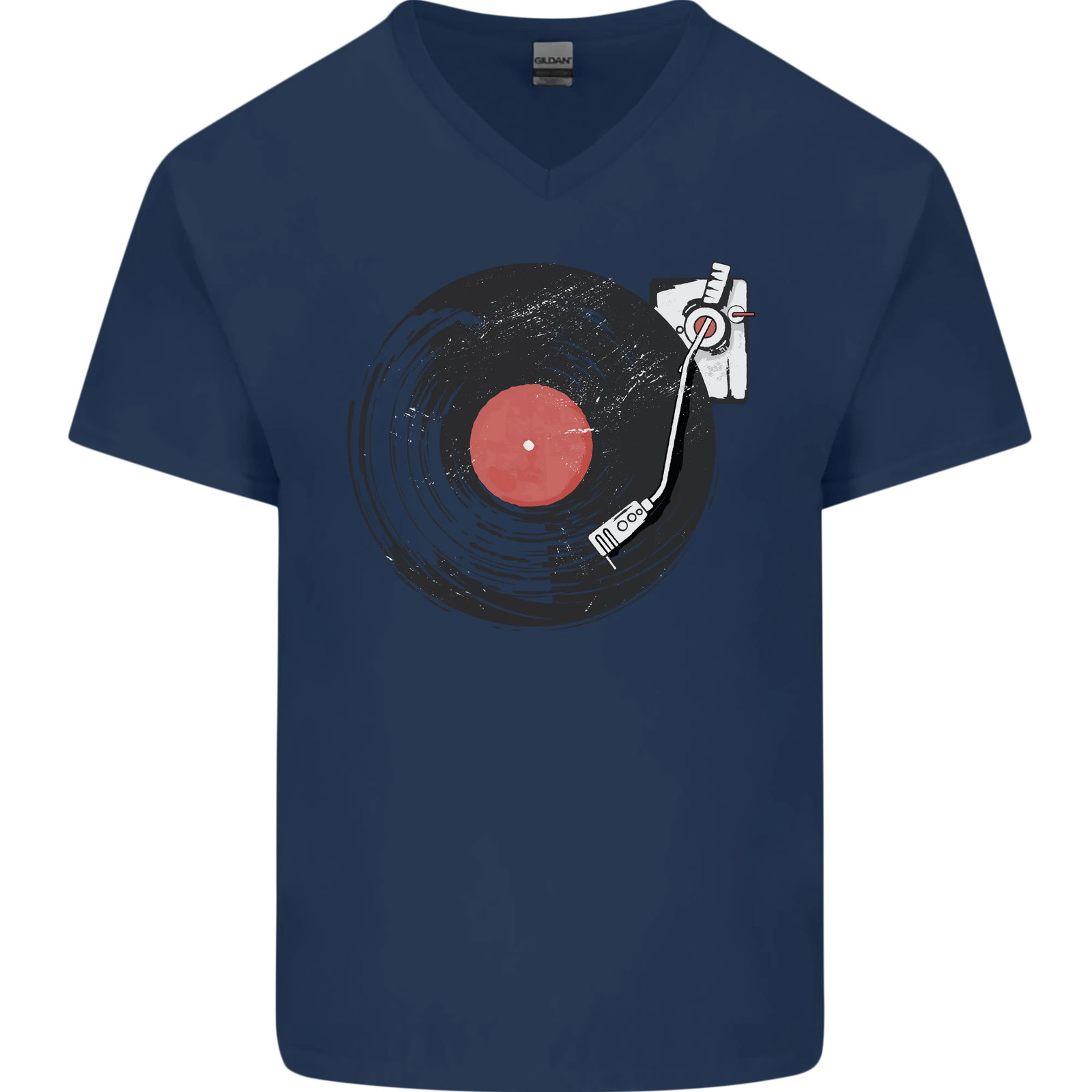 T-Shirt En Coton V-Neck Pour Homme Avec Effet Vieilli De Platine Vinyl DJ