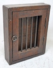 Belle Boîte à clés murale ancienne en bois massif, vintage (années 70-80). Porte avec miroir intérieur, extérieur, décorée de motifs dorés, charnières solides et bouton d’origine. Intérieur équipé de plusieurs crochets métalliques (28) permettant de ranger un grand nombre de clés (un seul crochet a été changé). Objet à la fois pratique et décoratif, idéal pour une entrée, une maison de campagne ou une décoration rétro.. En très bon état pour son âge. Dispose également d’une petite tablette sur le dessus. Fixation murale facile. Hauteur 50cm. Largeur 40cm. Profondeur 8,5cm.