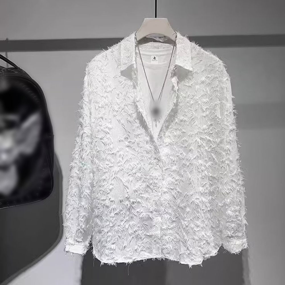 Chemise décontractée à manches longues à revers pour homme avec éléments d