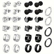 💎 Ensemble de boucles d'oreilles en acier inoxydable unisexe 🔥 12 pièces bo...