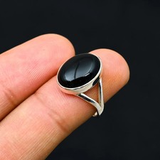 Bague En Onyx Noir Oval En Argent Sterling 925 Pour Femme Cadeau D'Anniversaire