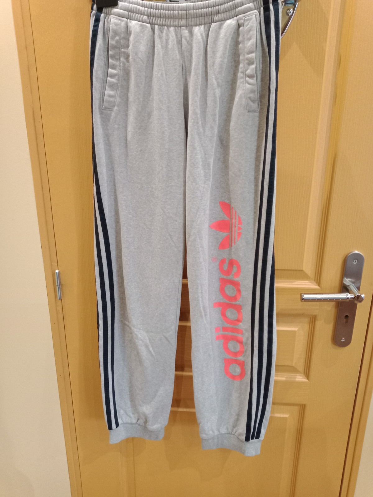 pantalon de jogging mixte , 13 , 14 ans , longueur des jambes 74 cm , gris a bandes noir état correcte ,