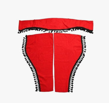 Ensemble de rideaux en peluche rouge avec pompons noirs pour camions. L'ensemble comprend : 1 x rideau pour le pare-brise avant 2 x rideaux pour les windows des portes latérales Taille approximative : hauteur - 70 cm largeur - 50 cm N'hésitez pas à nous contacter si vous avez des questions.