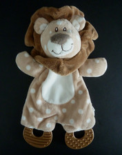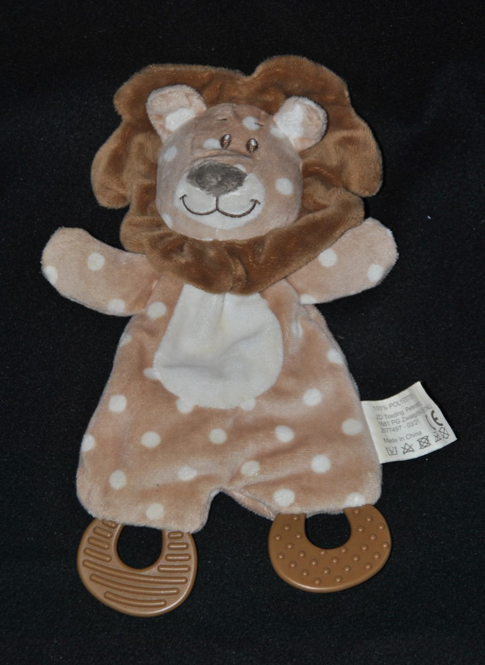 🦁 Doudou lion plat ACTION ZD TRADING blanc beige pois plaques dentition TTBE