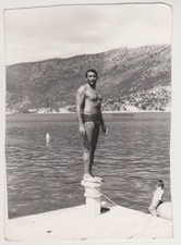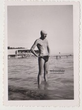 Beau jeune homme sans chemise muscle avec bikini femme maillot de bain plage ...