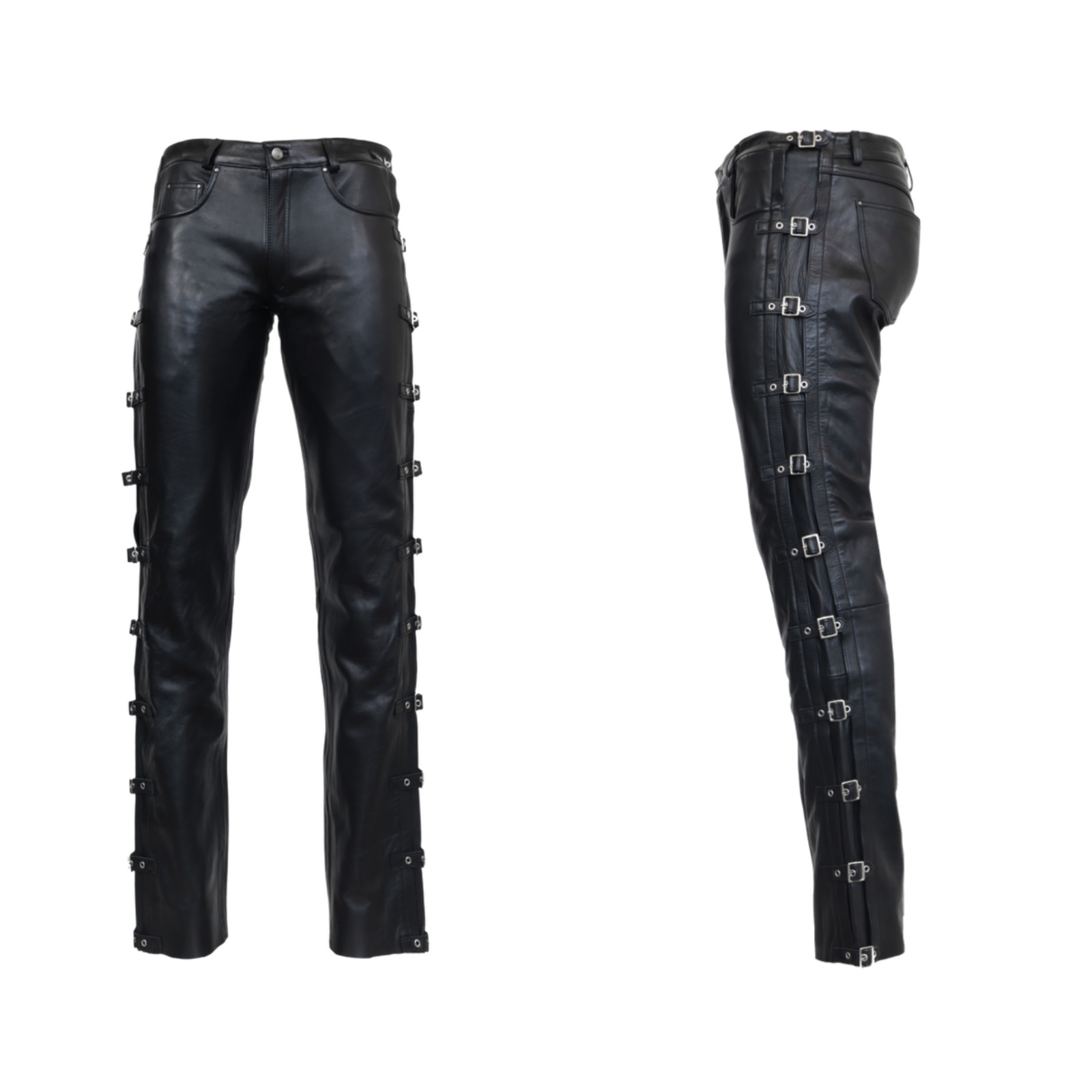 Pantalon en cuir pour homme taille à boucle latérale en cuir de vachette noir...