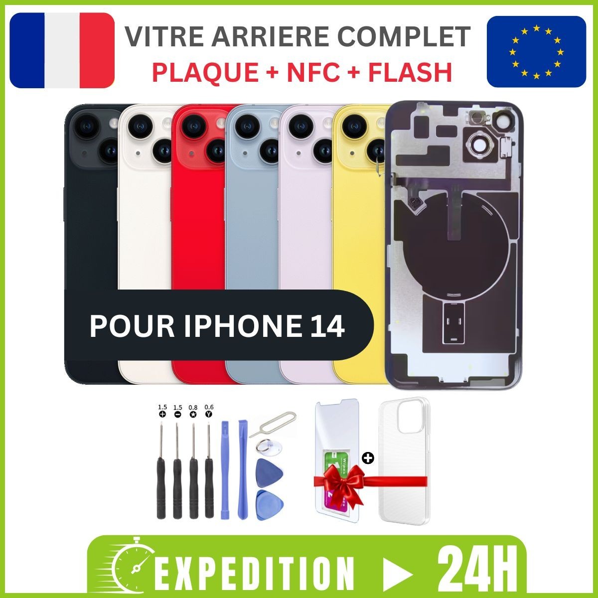 Vitre Arriere Complet pour iPhone 14 | NFC | Flash | Plaqu | Outils Adhésif