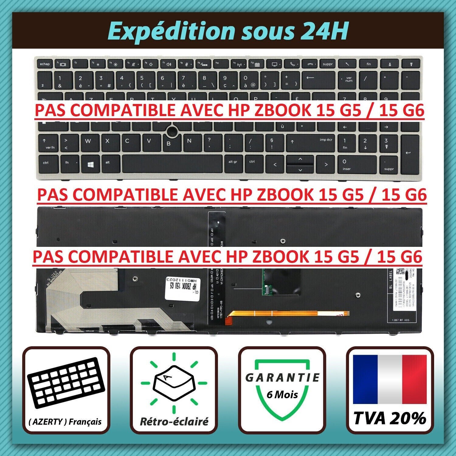 HP ZBOOK 15U G5 / 15U G6. CLAVIER FRANÇAIS AZERTY POUR. est de 15?. L?envoi des pièces. Si nous ne pouvions pas annuler ou arrêter votre commande et que celle ci est déjà expédiée, demandez un numéro de RMA pour le.