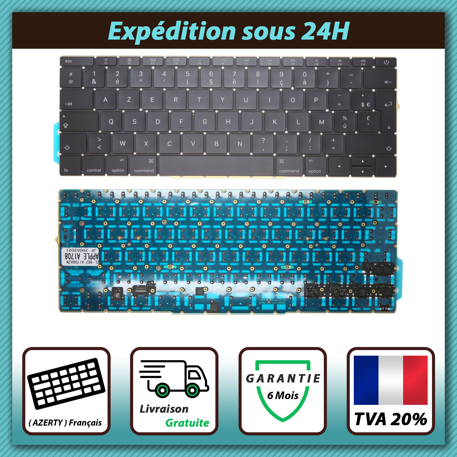 Clavier Apple MacBook Pro 13" A1708 EMC 2978 3164 Francais Azerty