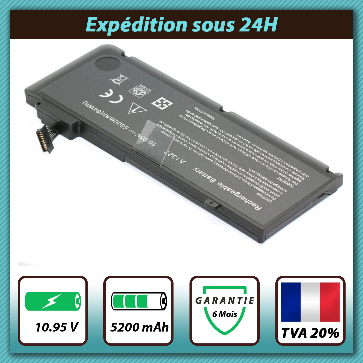 Batterie Compatible pour Apple A1322. Apple A1322. Apple MacBook Pro 13 - A1278 - Mid-2009 - MB990. Apple MacBook Pro 13 - A1278. Apple MacBook Pro 13 - A1278 - Mid-2009 - MB991. Apple MacBook Pro 13 - A1278 - Mid-2010 - MC374.