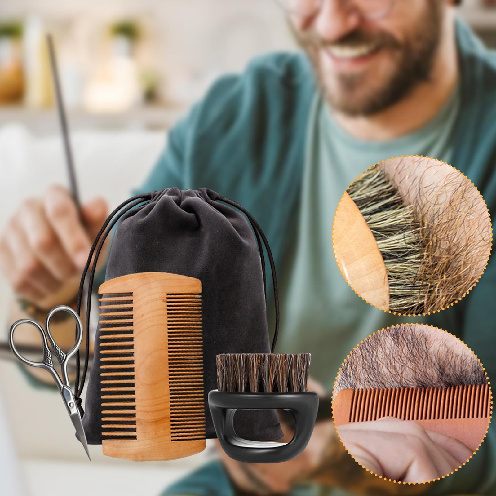 【Caractéristique】Ensemble de soins de moustache avec brosse à barbe portable, tondeuse de voyage, peigne double face en bois et pochette à cordon. 1 brosse à barbe. Vous n'avez besoin que d'une minute.