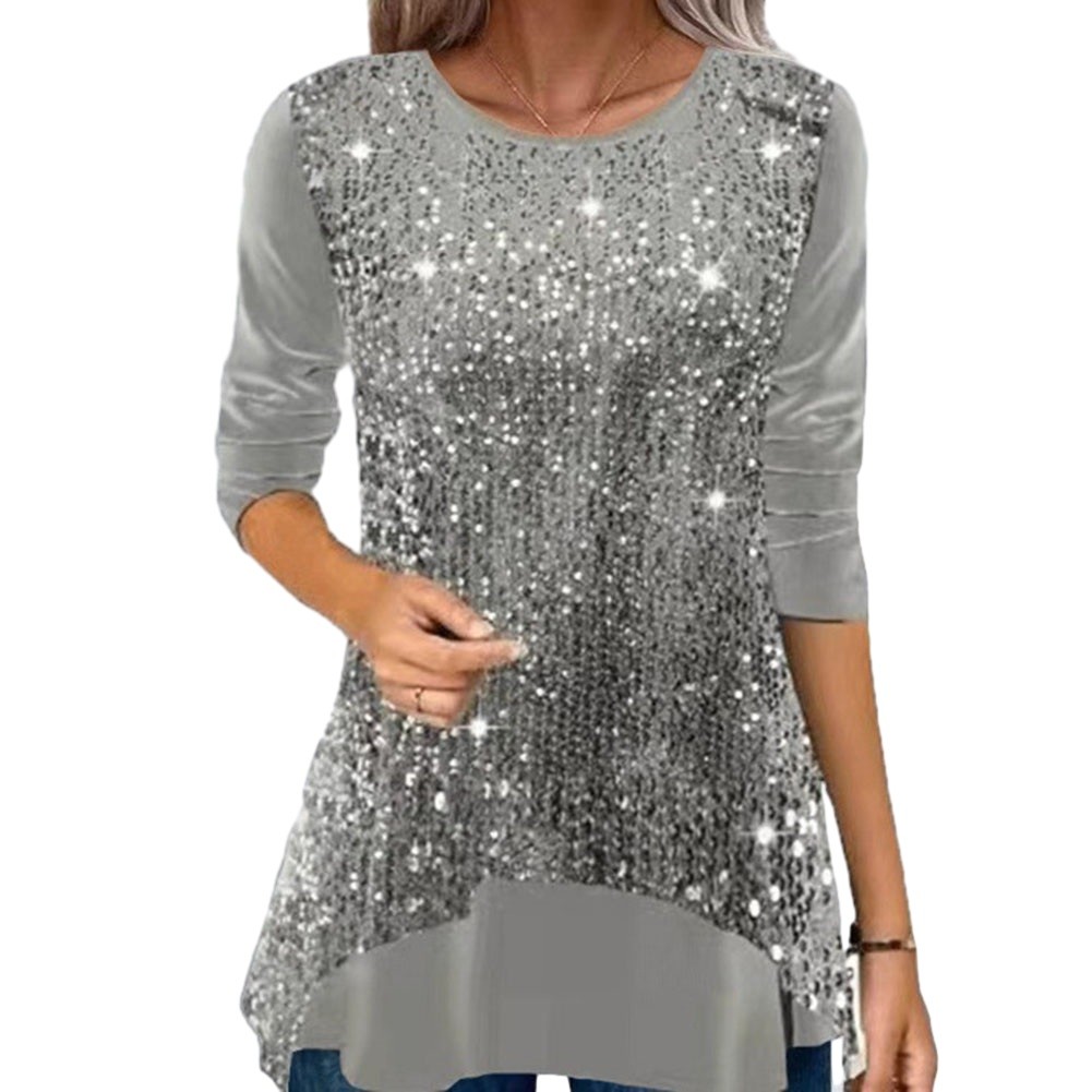 Chemisier décontracté à manches longues vert pour femmes paillettes fête tun