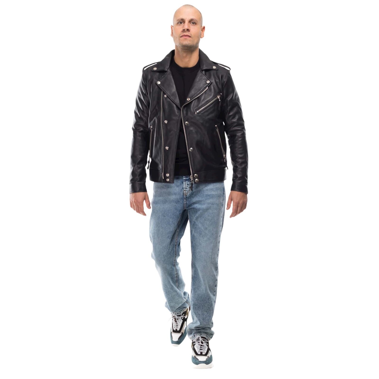 VESTE DE MOTARD POUR HOMMES EN CUIR VÉRITABLE FAIT À LA MAIN ITALIENNE - COUPE SLIM FANTASTIQUE FABRIQUÉ AVEC DU CUIR D'AGNEAU SOUPLE VÉRITABLE Couleur: noir TAILLE : VÉRIFIER LES TAILLES DU TABLEAU PHOTO #6. FABRIQUÉ EN ITALIE .