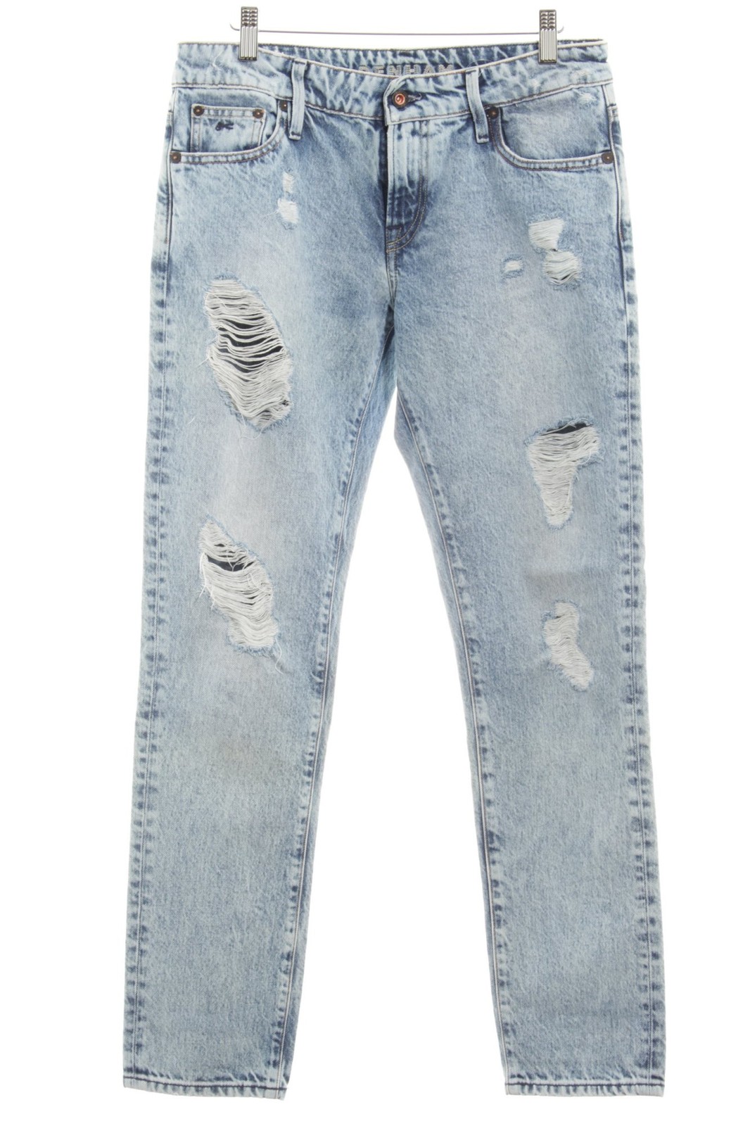 DENHAM Jeans coupe-droite Dames Jeans T EU 36 bleuet-blanc cassé style déchiré