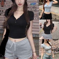 (9) Application:Daily. 8) Saison appropriée : toutes saisons. 7) Style:Casual. 6) Motif : couleur unie. 5) Élasticité : microélasticité. 4) Sleeve Style :Short Sleeve. 3) Neckline :V neck.