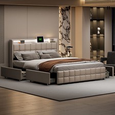 Lit rembourré 160x200cm lit double cadre de lit avec sommier à latte et LED FR