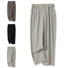 Pantalon de costume décontracté homme taille haute ample droit soyeux long noi