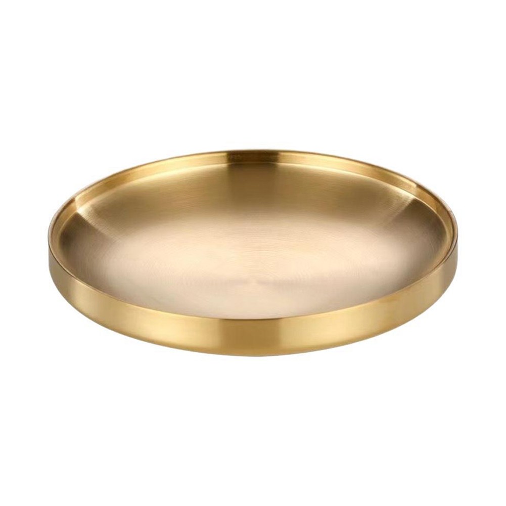 Plateau rond double couche en acier inoxydable doré avec base antidérapante po