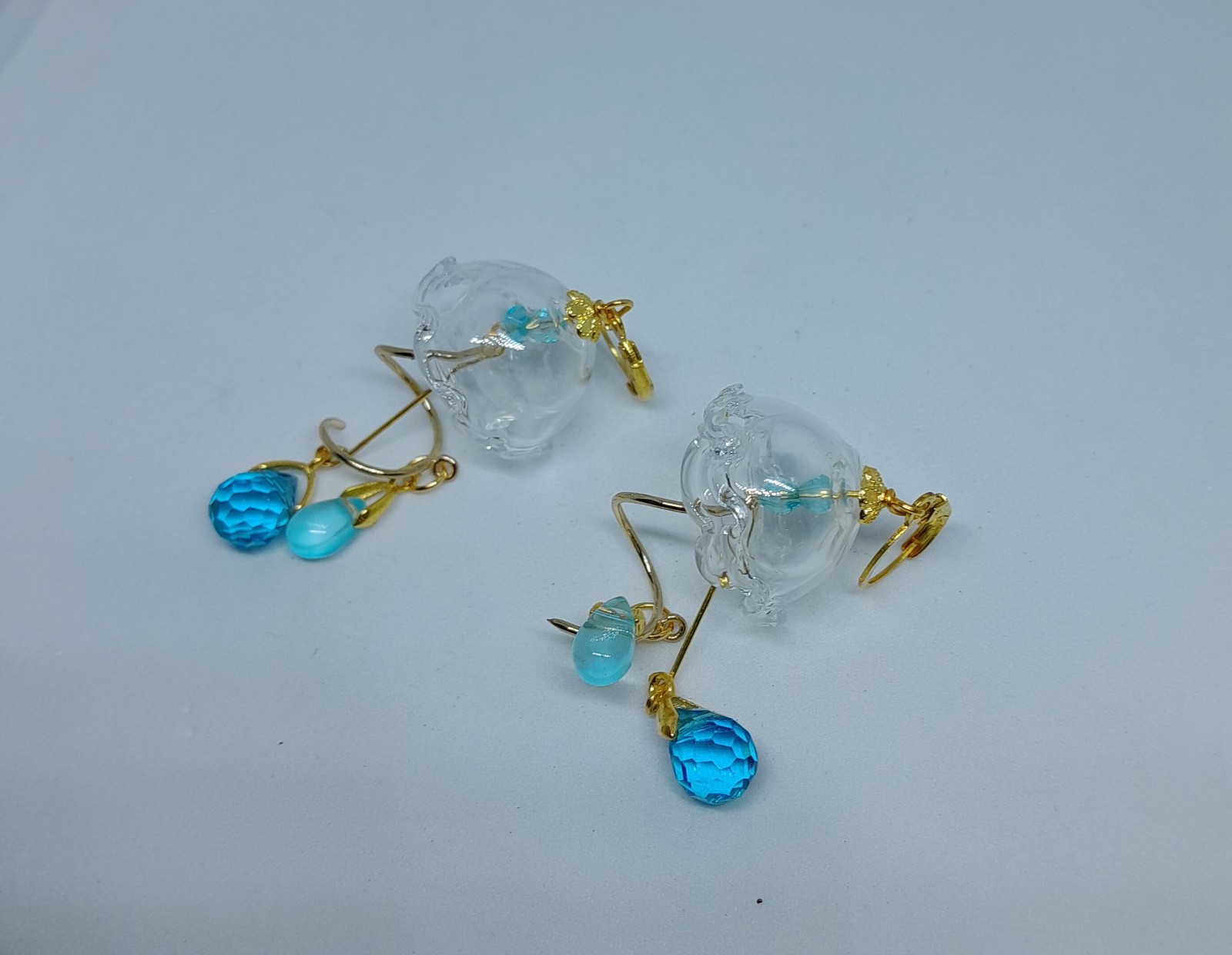 boucles d'oreille poétiques plaquées or méduse en verre de bohème création