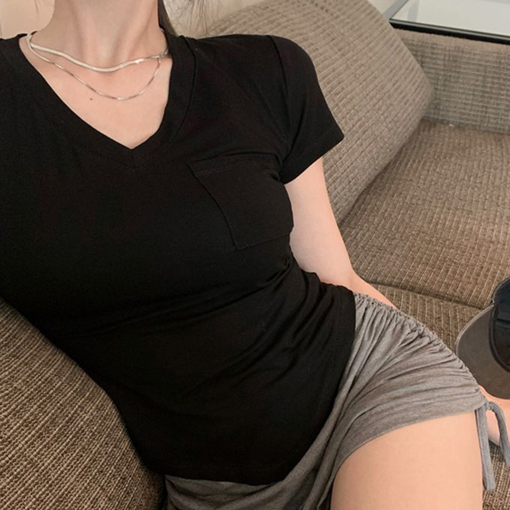 T-shirt coupe décontractée col V avec manches courtes pour femme dans les styl