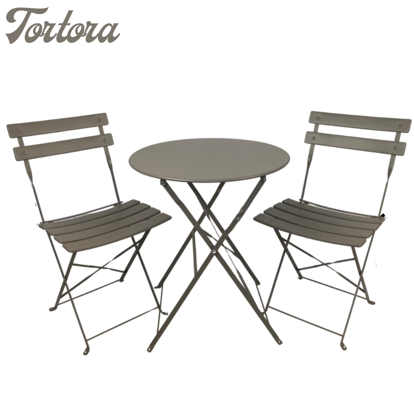 ENSEMBLE SALLE À MANGER DE JARDIN EN ACIER AVEC TABLE RONDE 2 CHAISES BAR EXTÉRIEUR.