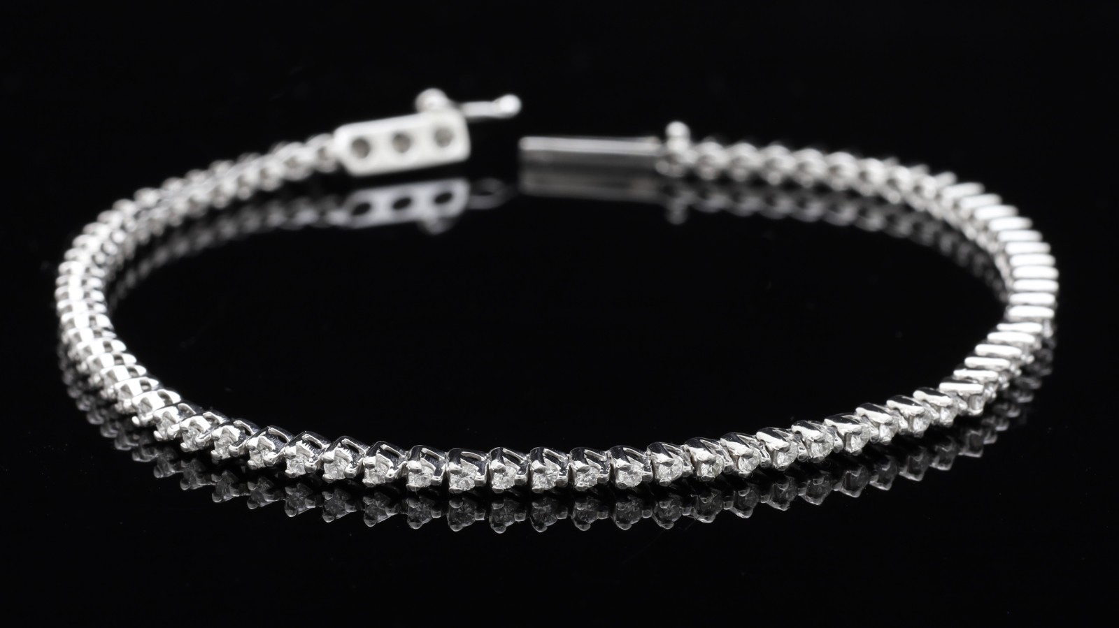 TENNIS EN OR BLANC 18 KT 750N.75 DIAMANTS RONDS TAILLE BRILLANT TOTALCOULEUR H VS2POUR UN TOTAL DE 0,75 CTLONGUEUR DU BRACELET 18,50 CMPOIDS GR. 7.90LES DIAMANTS SONT NATURELS, NON TRAITÉS ET AUTHENTIQUES(NOUS NE TRAITONS PAS DE FAUX)ARTICLE ACHETÉ PAR DES PARTICULIERS DANS NOS MAGASINSET RÉNOVÉ PAR NOTRE ORFÈVRECOMME MONTRÉ EXCELLENT POUR OFFRIR OU S'OFFRIR UN JOLI CADEAU NOUS ÉMETTONS UNE FACTURE DE VENTEDANS LEQUEL NOUS CERTIFIONS L'ARTICLENOUS LIVRONS GRATUITEMENT DANS LE MONDE ENTIER.