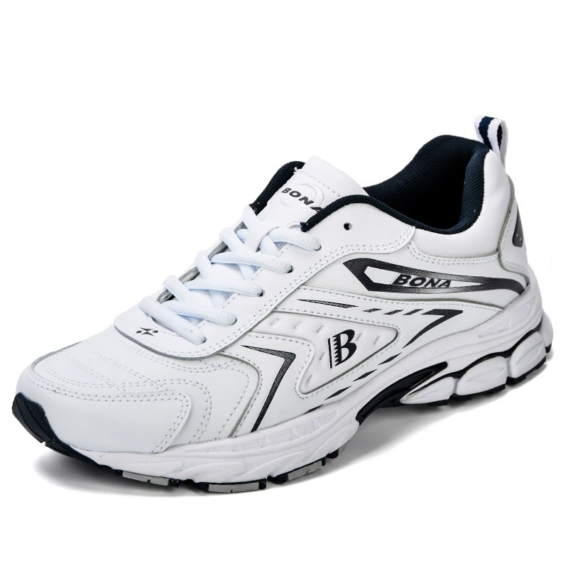 BONA - Chaussures sneakers blanches à style sportif, tendance, course à pied