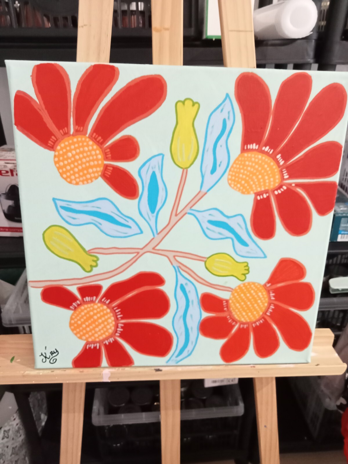 Tableau Peinture Acrylique sur toile Quatre Fleurs