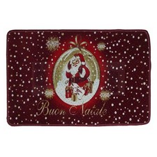 Père Noël : Tapis 50x75 cm. Beaucoup de couleur et de lumière grâce à l’utilisation de fils de lurex qui donnent au tapis une belle touche de brillance. L’épaisseur du tapis n’est que de 5 mm. Une boule de cristal qui entoure le Père Noël de tous ses cadeaux, un souhait de joyeuses fêtes sous une douce chute de neige.