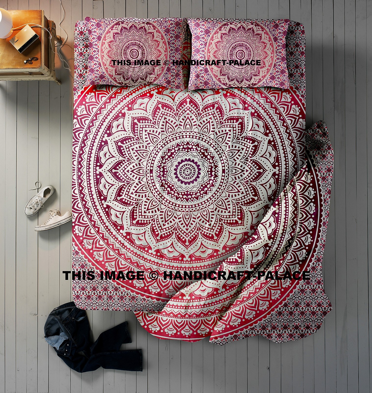 Article - 1 couvercle de couette PC, feuille de lit de 1 PC avec 2 Couvertures d'oreiller PC * Beau écran indien Coton imprimé en coton Ombre Mandala Couvrette, feuille de lit et couvercles d'oreiller. * L'ensemble de couette a une base blanche sur le motif de mandala ombre rose et multicolaire a été fabriqué. * Boucles cachées à l'intérieur pour une enceinte dans la couverture de couette. * Vous pouvez utiliser la feuille de lit comme tapisserie ou pendaison murale. Cette housse de couette est faite de tissu de coton à 100% Powerloom qui donne une sensation en douceur en raison de son tissage fort et durable. 2. Une belle couverture de courtepointe 4. Une magnifique couverture de couverture * Les acheteurs internationaux sont responsables des droits et taxes de leur pays. * Nous expédions.